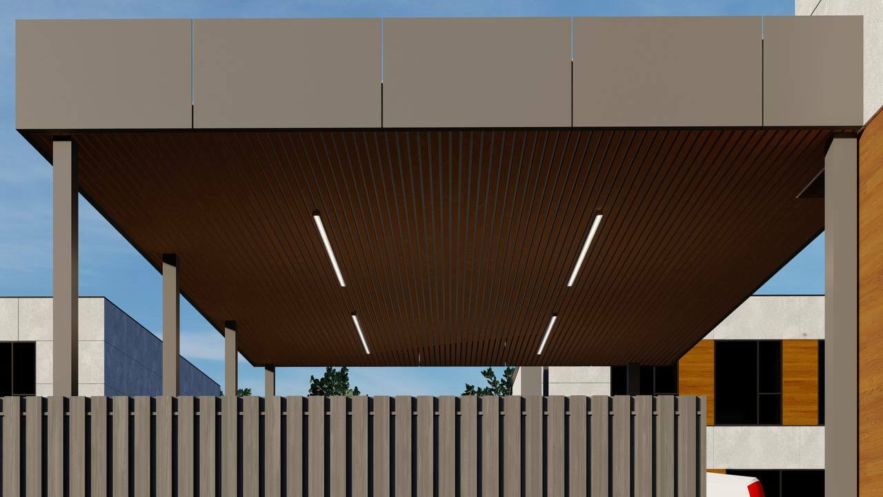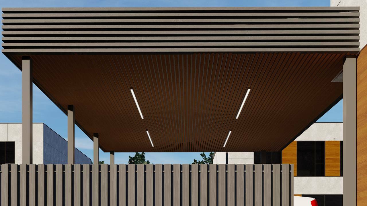 Используемые материалы: каркас- металл, кровля крашенный профлист, фриз-алюминиевый композит, подшивка брусок сосна